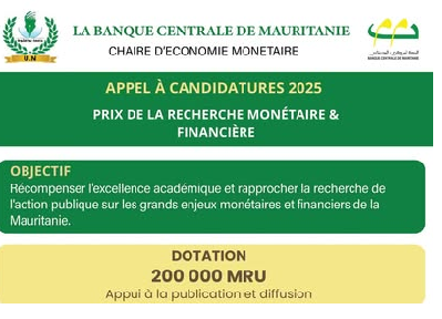 Par cette initiative, la Banque Centrale de Mauritanie réaffirme son engagement en faveur de la recherche, de l’excellence académique et du développement de la pensée économique au service de l’action publique.