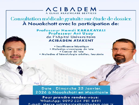 Lors d’une visite à Nouakchott, prévue en janvier 2026, le Professeur Hamdi KARAKAYALI, MD, chirurgien spécialiste en transplantation d’organes et le Professeur associé Dr. Ant UZAY, Spécialiste en hématologie à l’hôpital Acıbadem Atakent (Turquie), rencontreront des patients mauritaniens.