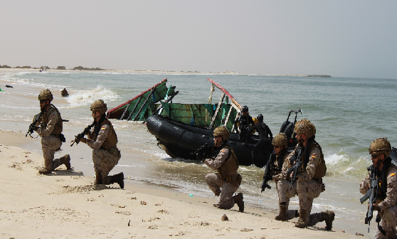 La coopération militaire s’est concentrée sur des domaines tels que la sécurité maritime, la surveillance et la protection des espaces côtiers, la lutte contre les menaces asymétriques, l’hydrographie, la gestion des urgences et l’assistance sanitaire, se concluant par une patrouille combinée dans les eaux territoriales mauritaniennes, menée par la Marine nationale et la Marine espagnole. Par ailleurs, des actions de coopération civilo-militaire ont été développées afin de soutenir les communautés locales et de renforcer la résilience de la population.